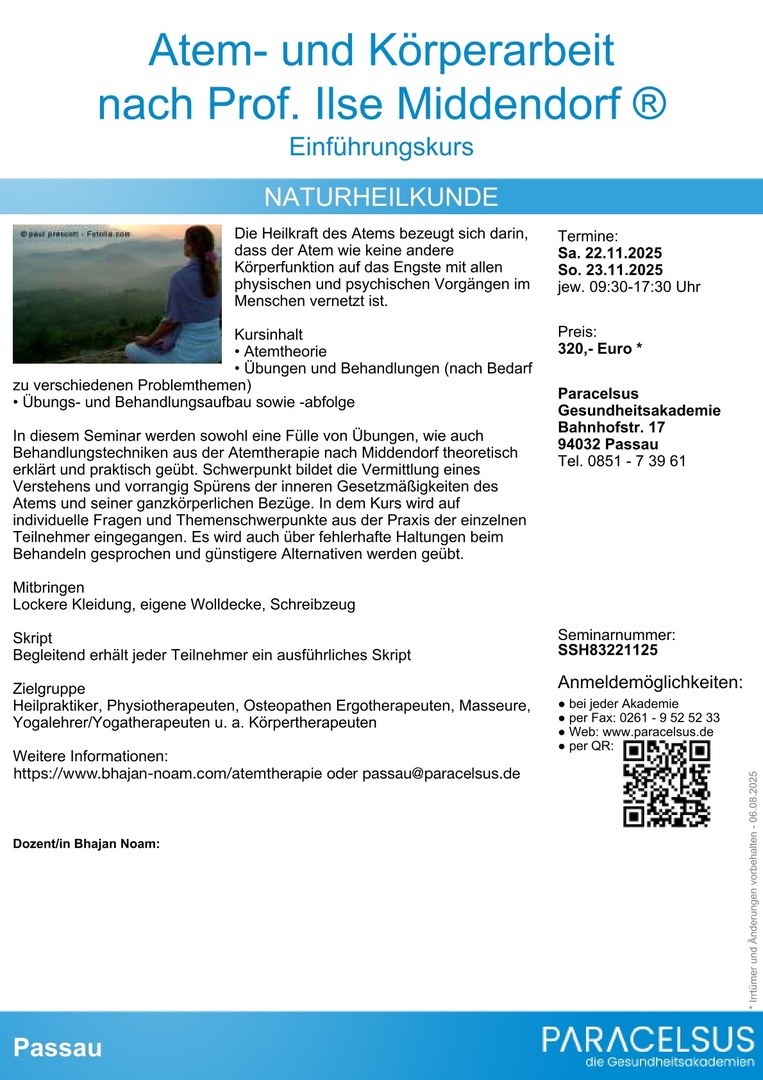 Aktueller Kurs: 22.-23.11. 2025 Passau, Paracelsus HPS